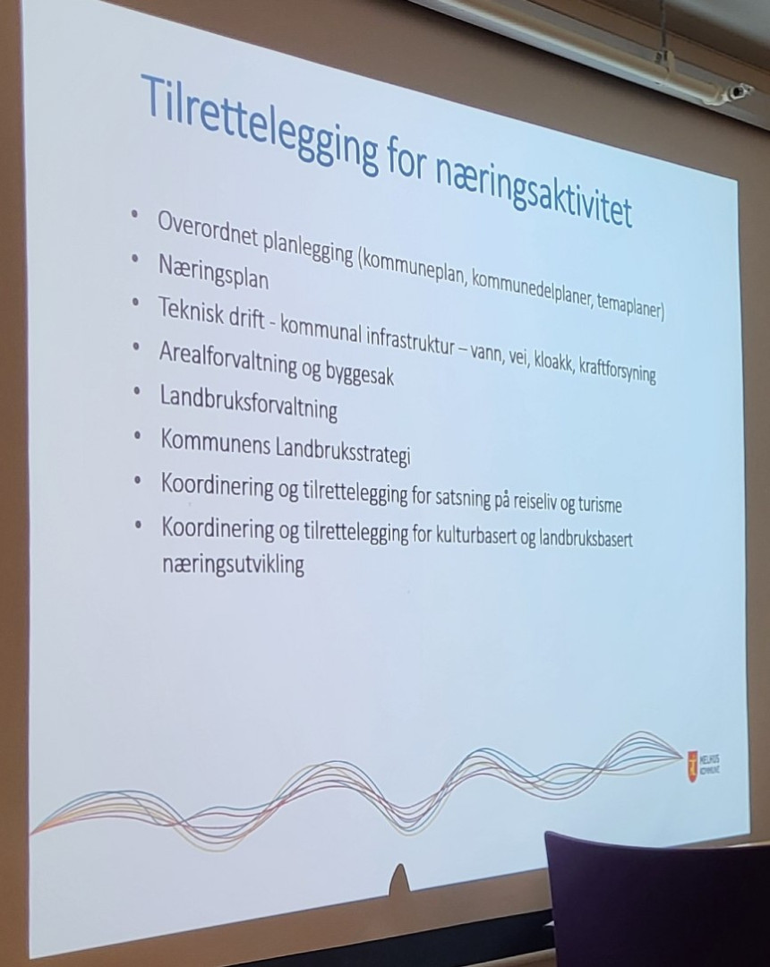 Hun fortalte om et omfattende arbeid med å gjøre kommunen attraktiv for videre utbygging av næringsliv, samtidig som vi tar vare på eksisternede virksomheter.